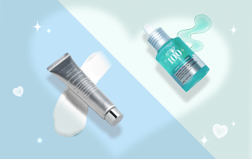 Hyaluronic Acid and Squalane separately are great for treating dry skin, but did you know that they work even better together? This is because they both treat different facets of dryness: Hyaluronic Acid is a humectant that attracts moisture to the skin, whereas Squalane is an occlusive that forms a protective barrier on the skin to prevent moisture from escaping. When used together, you get the best of both worlds and can make sure that the hydration you’re applying to your skin actually stays in the dermis and does its duty in bringing that needed quench.